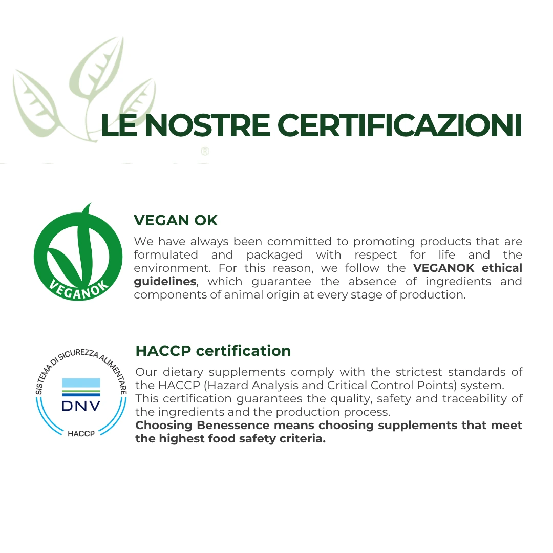 Our food supplements are strictly compliant with HACCP food safety standards. This certification represents an uncompromising commitment to the quality, safety and traceability of our ingredients and manufacturing process. When you choose our products, you can be sure that you are receiving dietary supplements that meet the highest standards for food safety and quality.