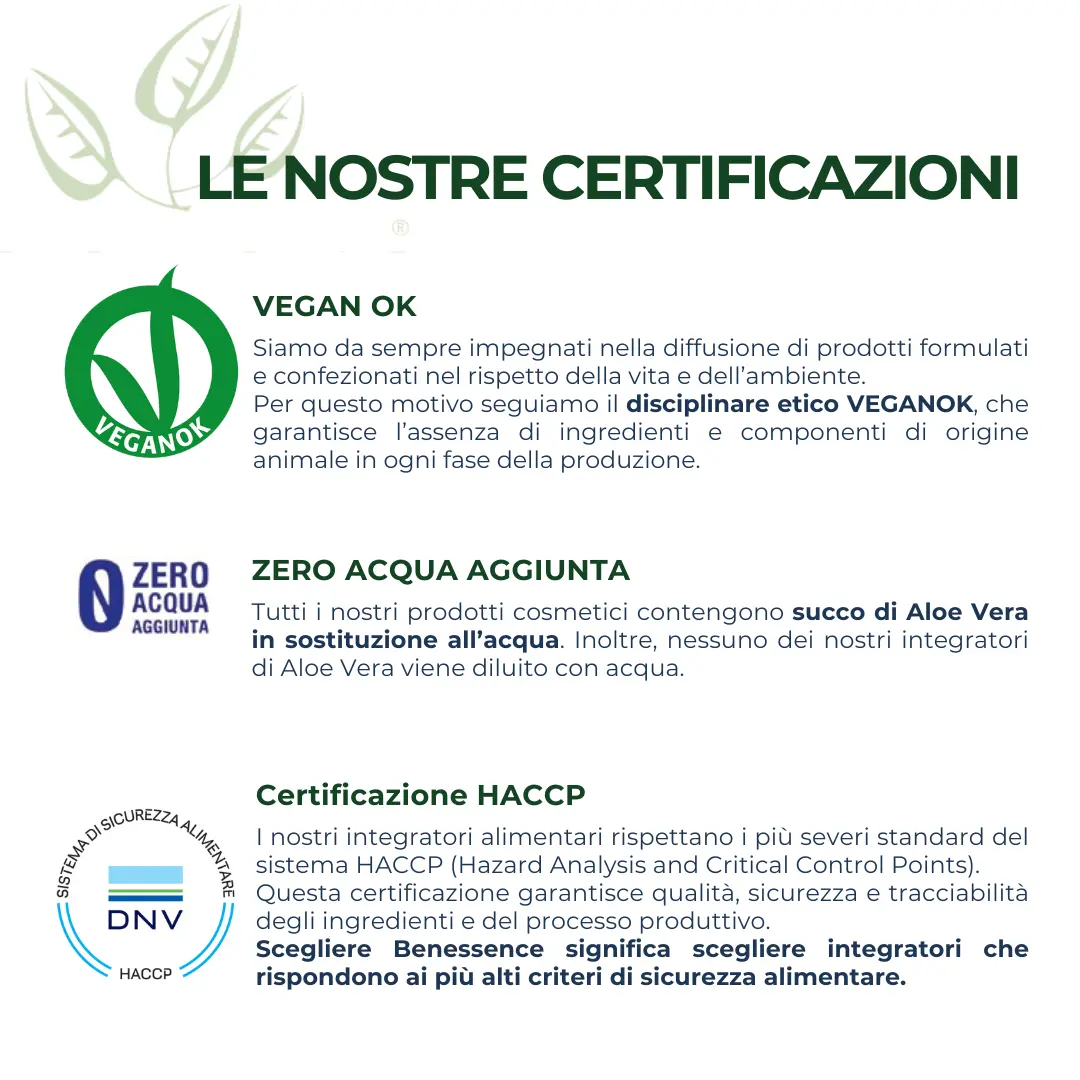 • Prodotto di qualità: succo di Aloe Vera al 99,8% Benessence. È formulato con il minimo di elaborazione per consentire ai componenti naturali della pianta di rimanere inalterati ed espletare al meglio i propri benefici. Ne risulta un prodotto NON filtrato e NON pastorizzato, costituito solo da vera polpa, per darti la piena percezione dell’Aloe Vera.